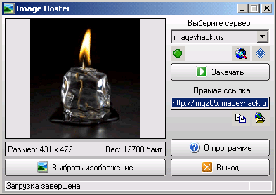 "Программа для закачки картинок на любой из 10 бесплатных сервисов хранения изображений. Выберите файл и через несколько секунд получите прямую ссылку, не тратя лишнего трафика.